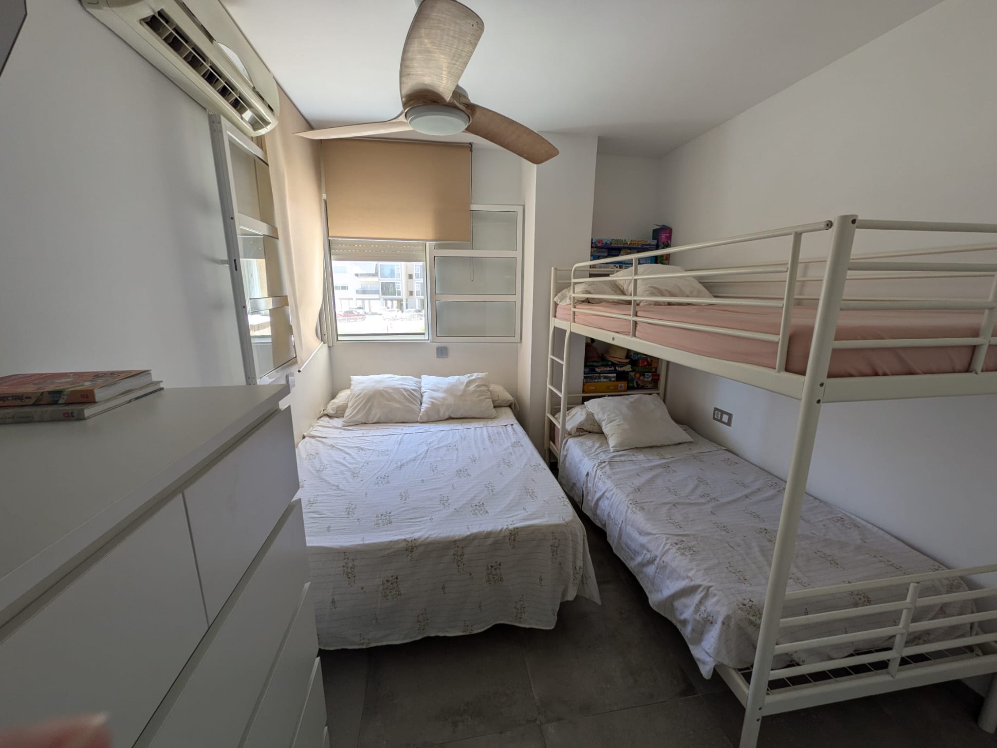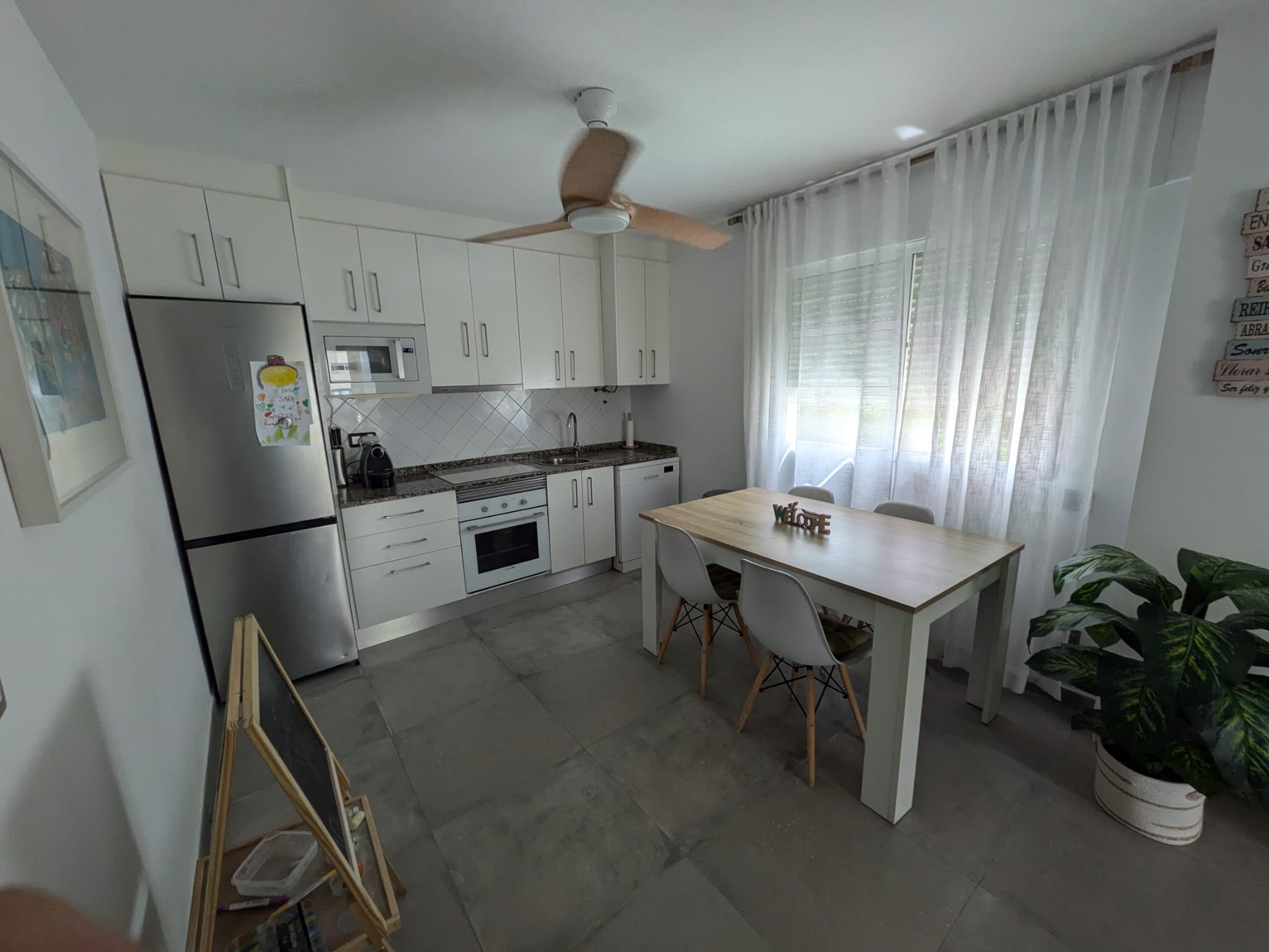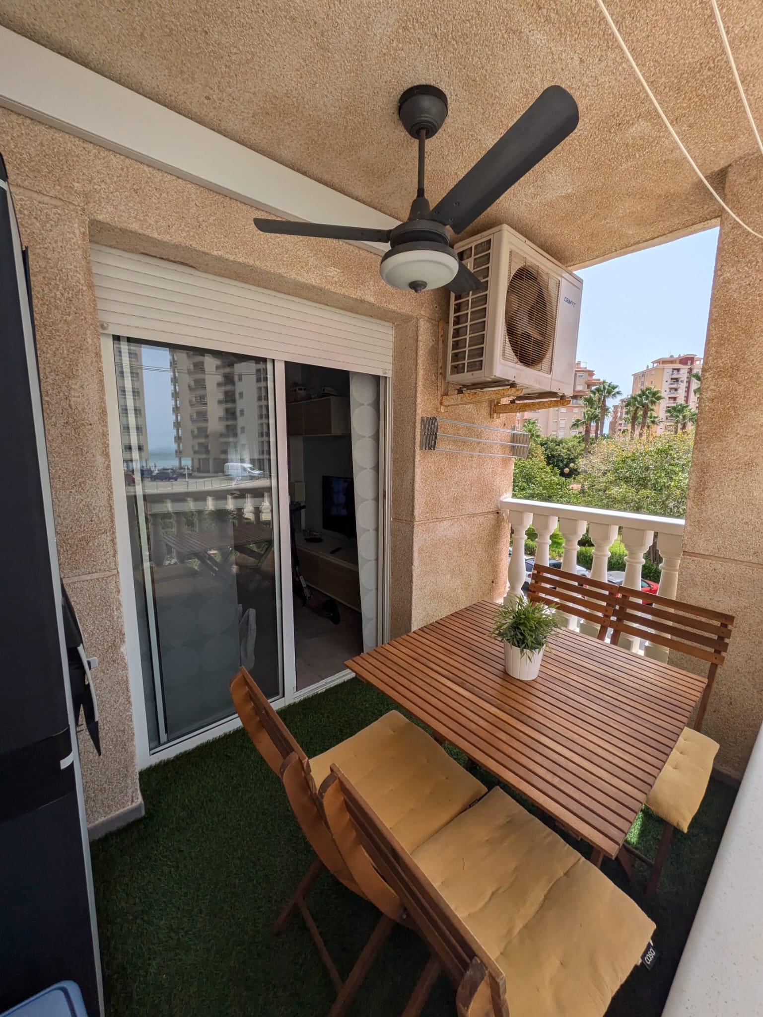 Tiene aire acondicionado en el salón y en la habitación. 2 ventiladores en el salón-comedor, 1 en la habitación y 1 en la terraza. Armario empotrado en la habitación, lavavajillas y lavadora en el baño. Todas las ventanas tiene mosquiteras. La terraza tiene césped. Todo lo necesario para vivir todo el año.