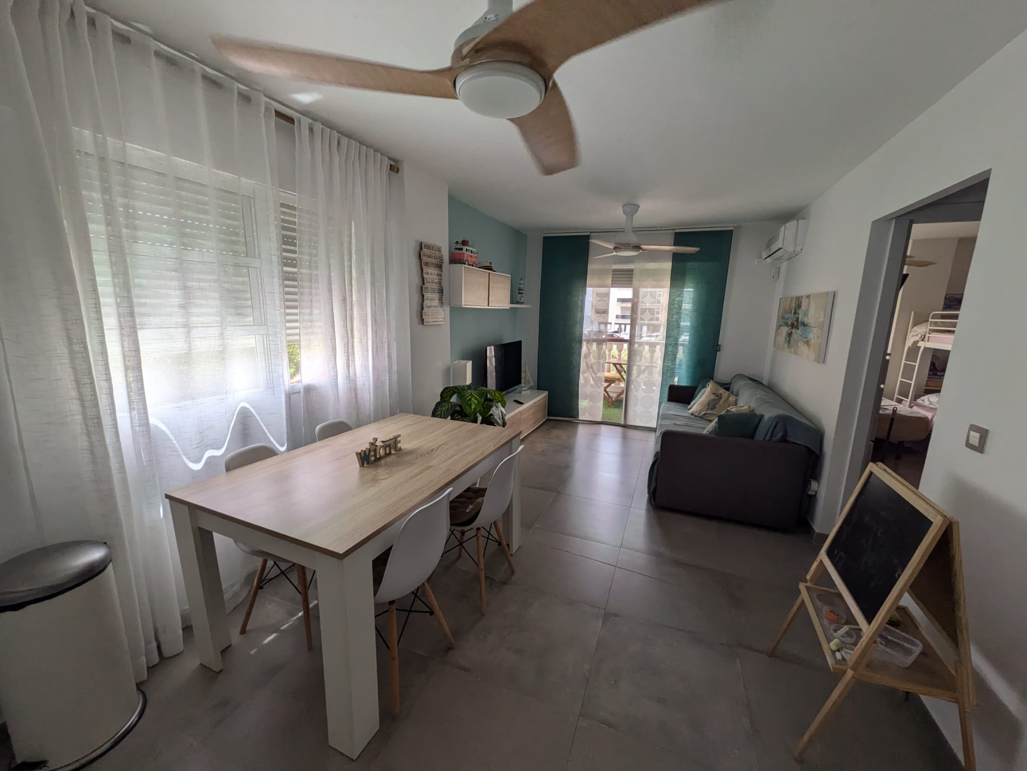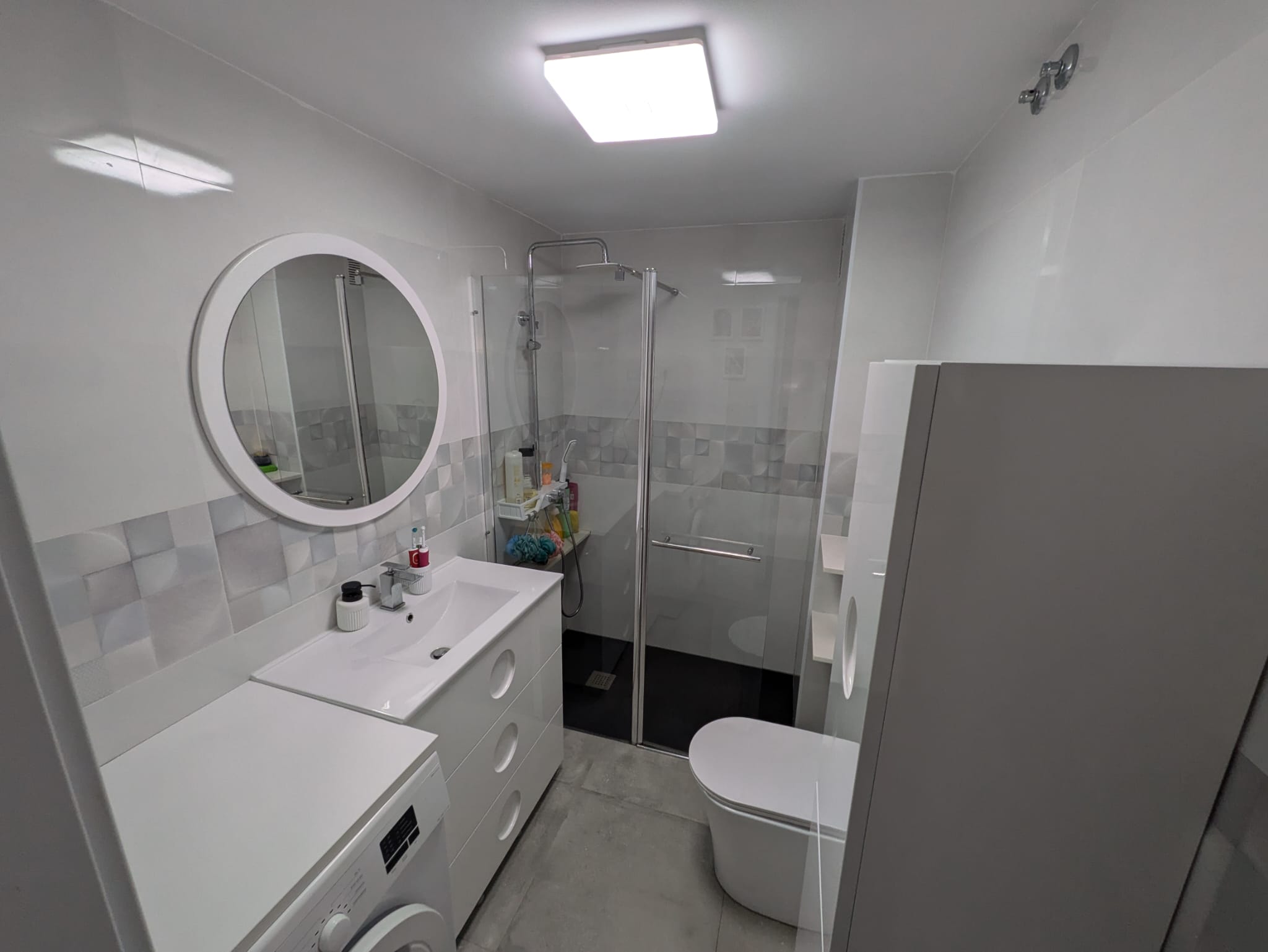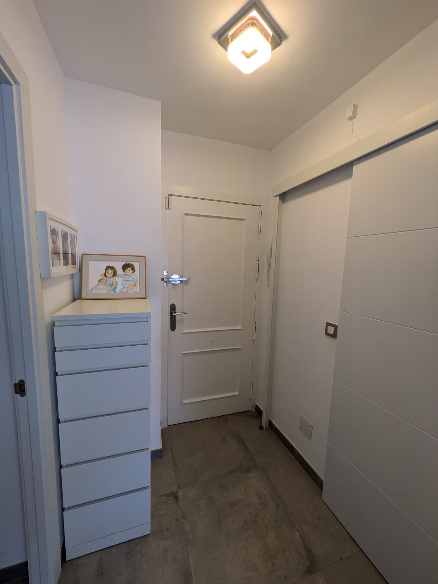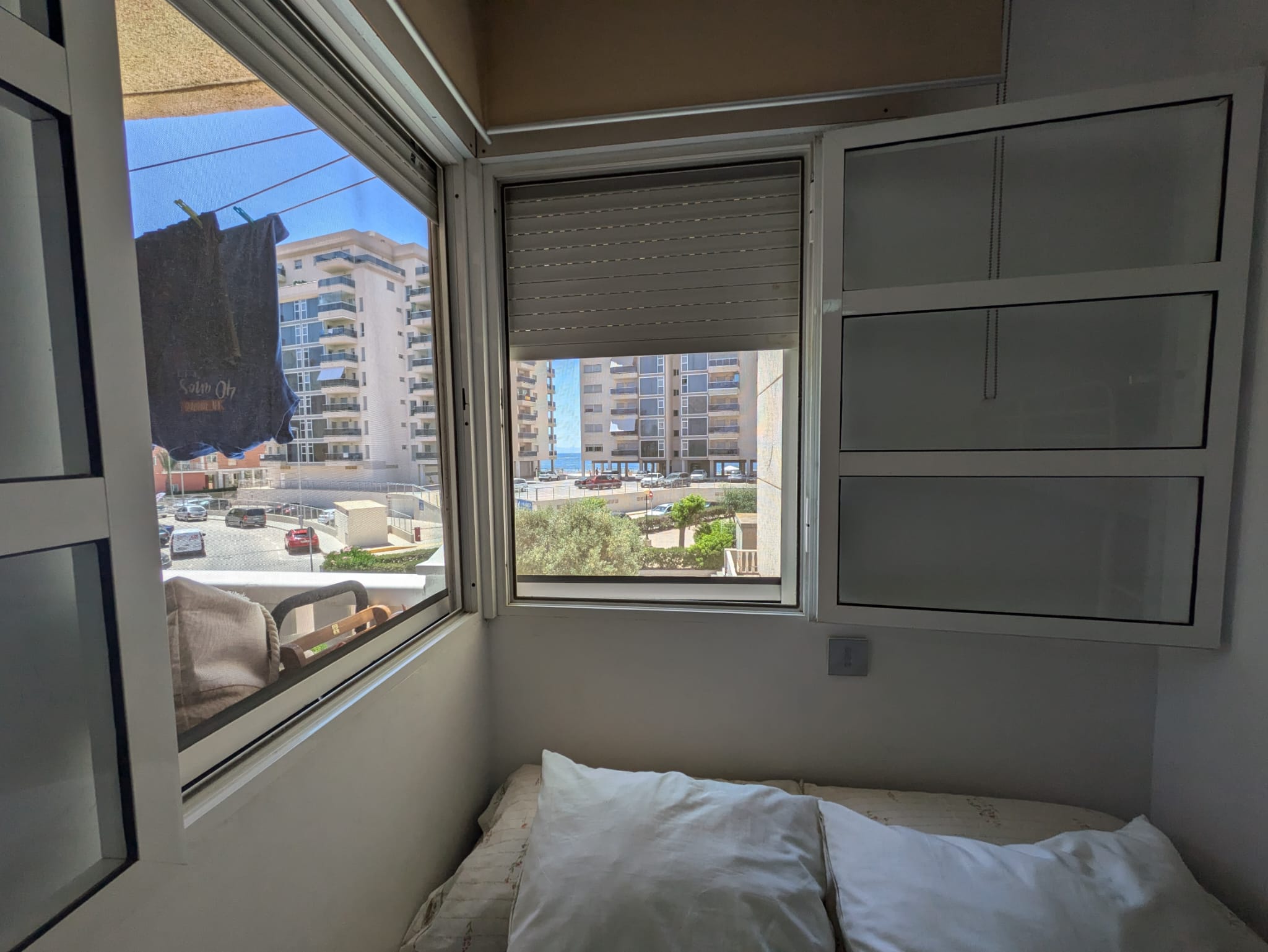 Tiene aire acondicionado en el salón y en la habitación. 2 ventiladores en el salón-comedor, 1 en la habitación y 1 en la terraza. Armario empotrado en la habitación, lavavajillas y lavadora en el baño. Todas las ventanas tiene mosquiteras. La terraza tiene césped. Todo lo necesario para vivir todo el año.